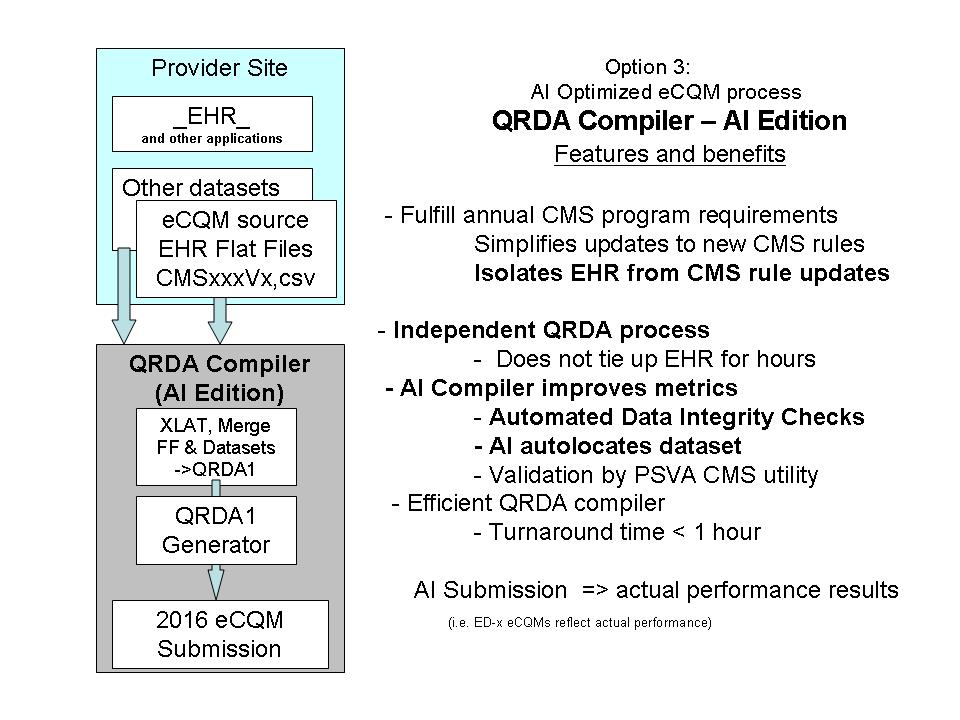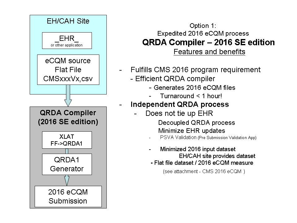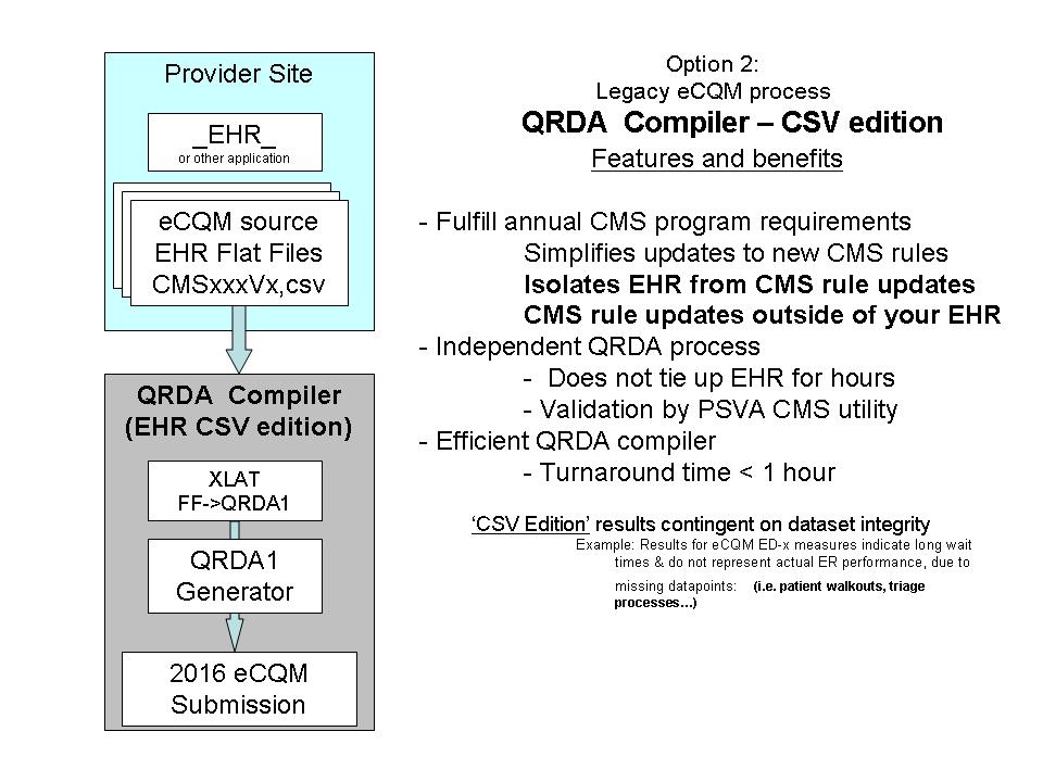 - MU2 & MU3 compliant EHRs will expedite  processing by our QRDA compiler