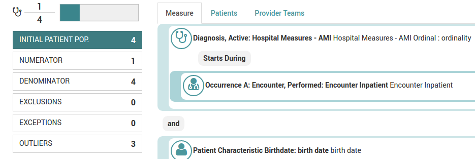 6. Details for each measure's report can be displayed on details screen, including details of measure definition's), denominator, numerator, exceptions, exclusions, outliers, etc.
