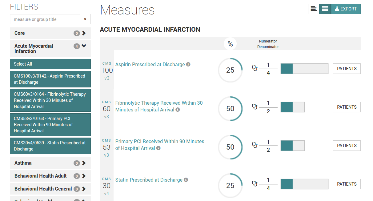 7. To document your findings, Sherlock Holmes eCQM exports the details of your findings, including the patient panels for each category: